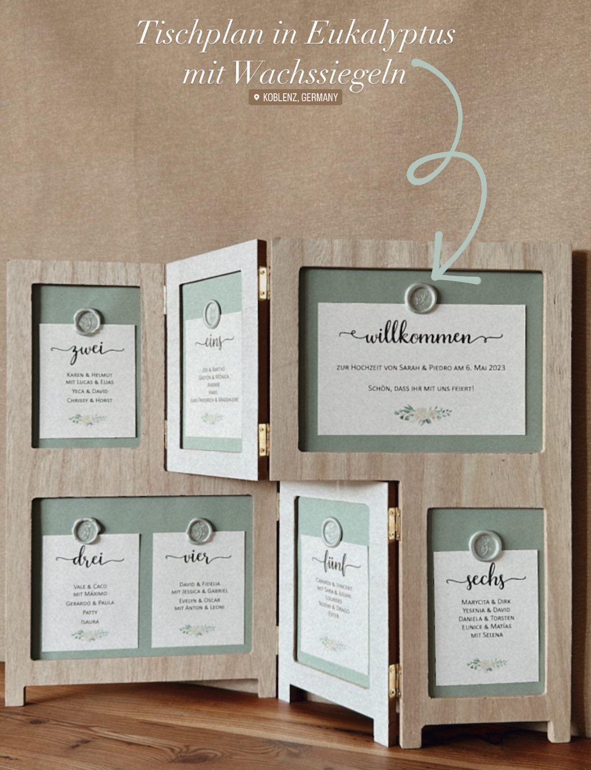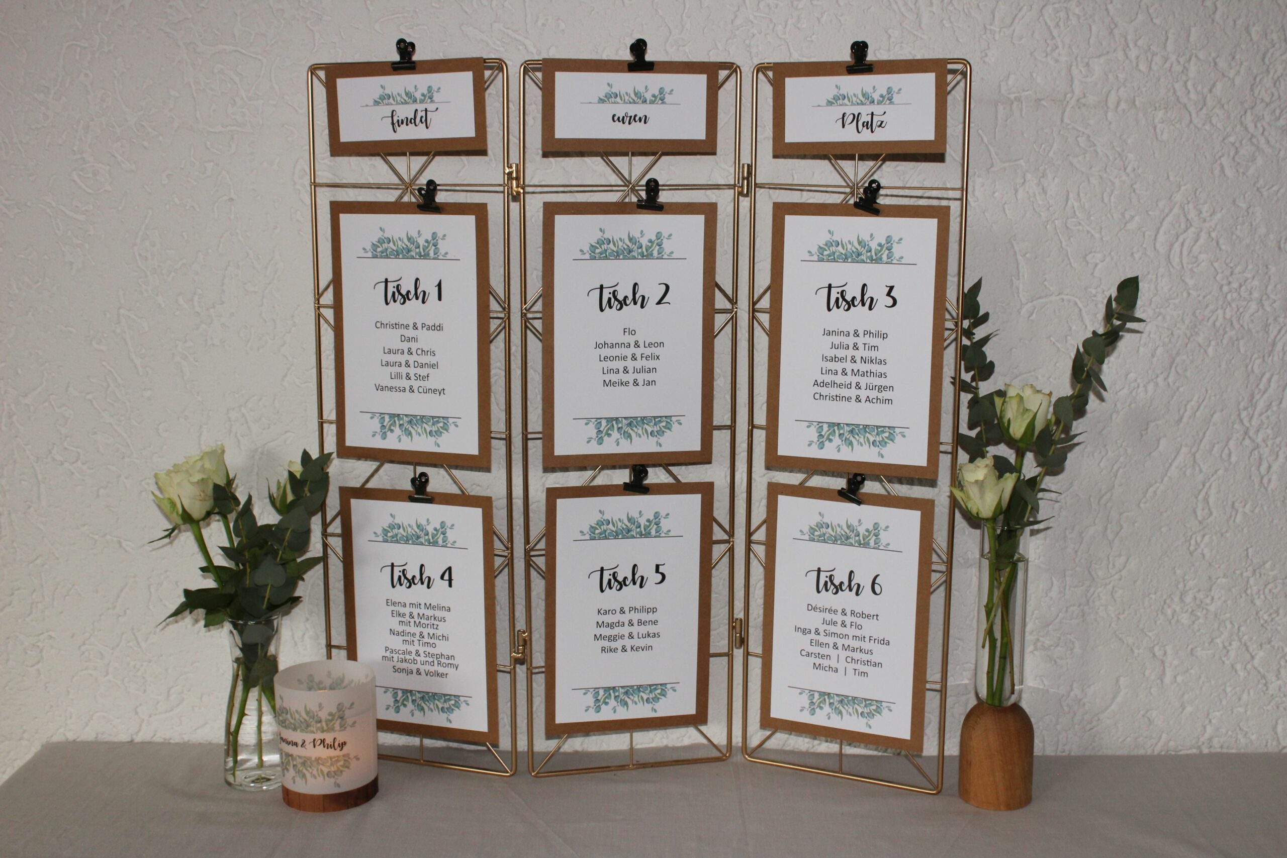 Möglich als Tischübersicht, aber auch als Aufsteller pro Tisch. So wie’s euch gefällt.