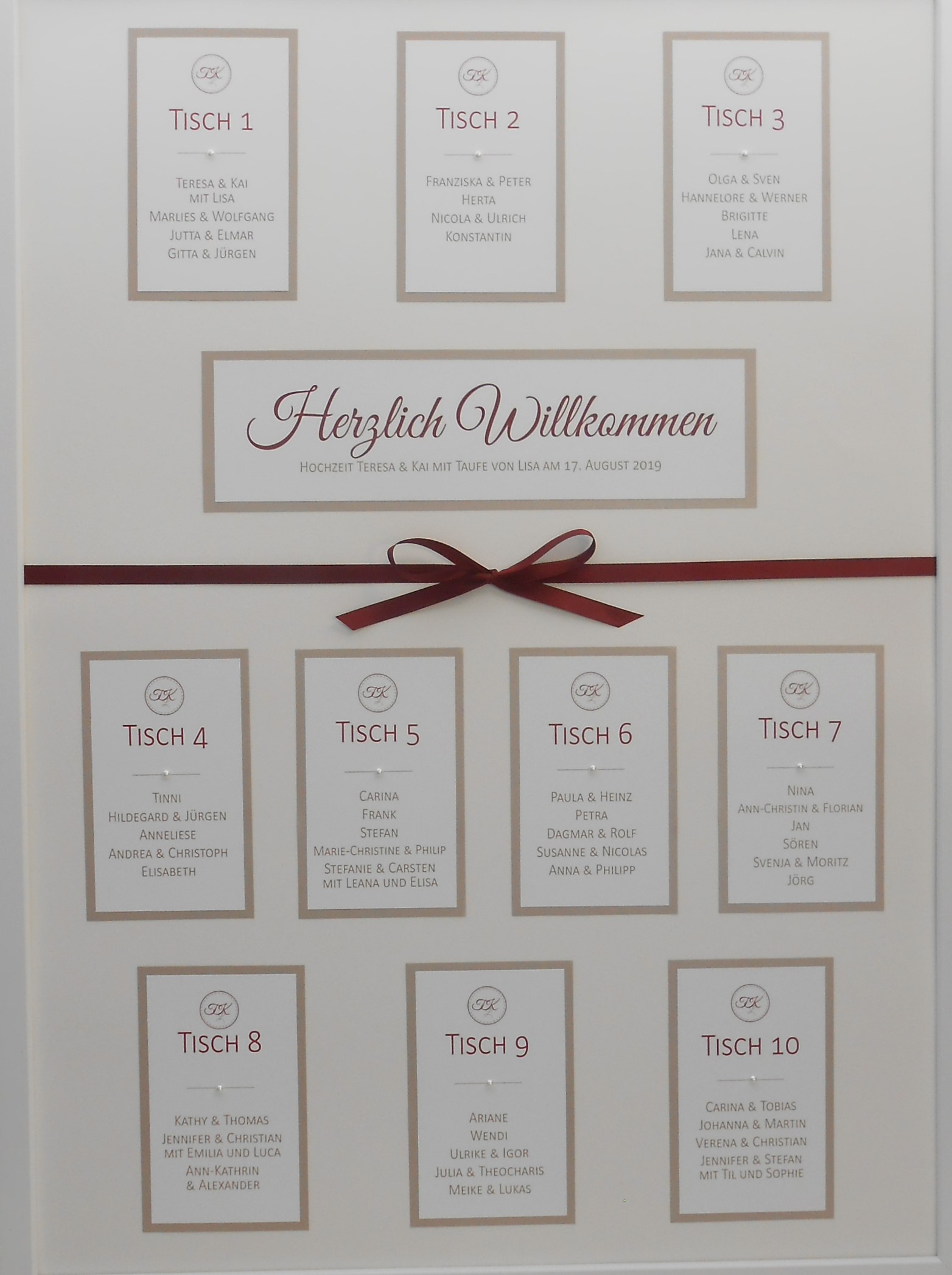 Sitzplan und Tischnummer