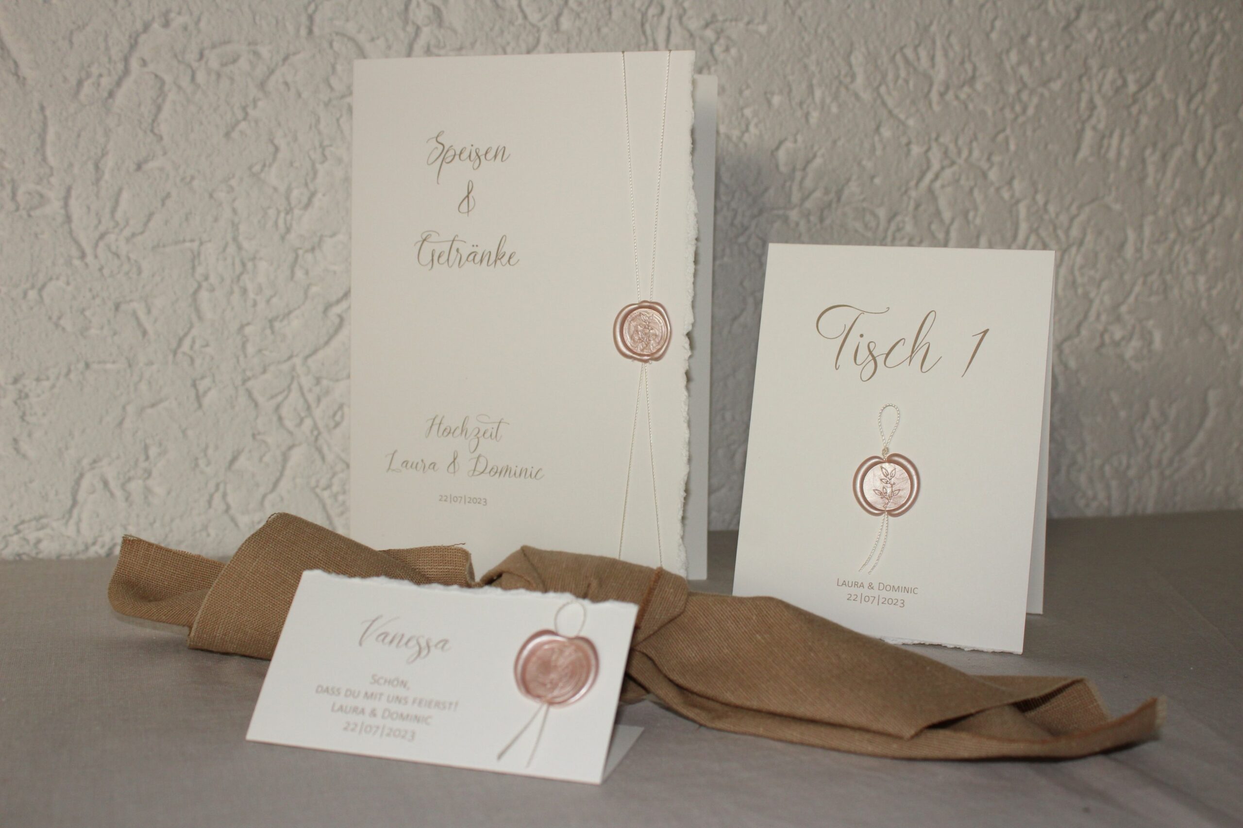 Mit euren Namen, dem Hochzeitsdatum und dem Motiv eurer Wahl wird die Papeterie für euch zu etwas ganz Besonderem.