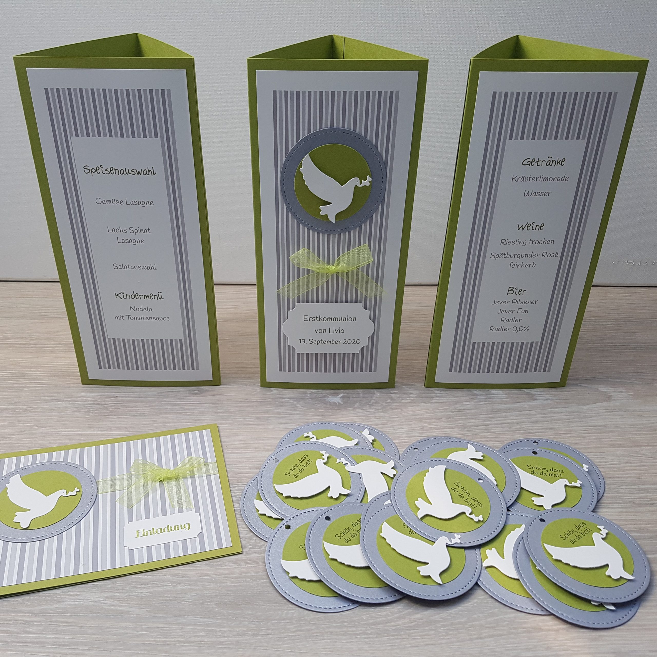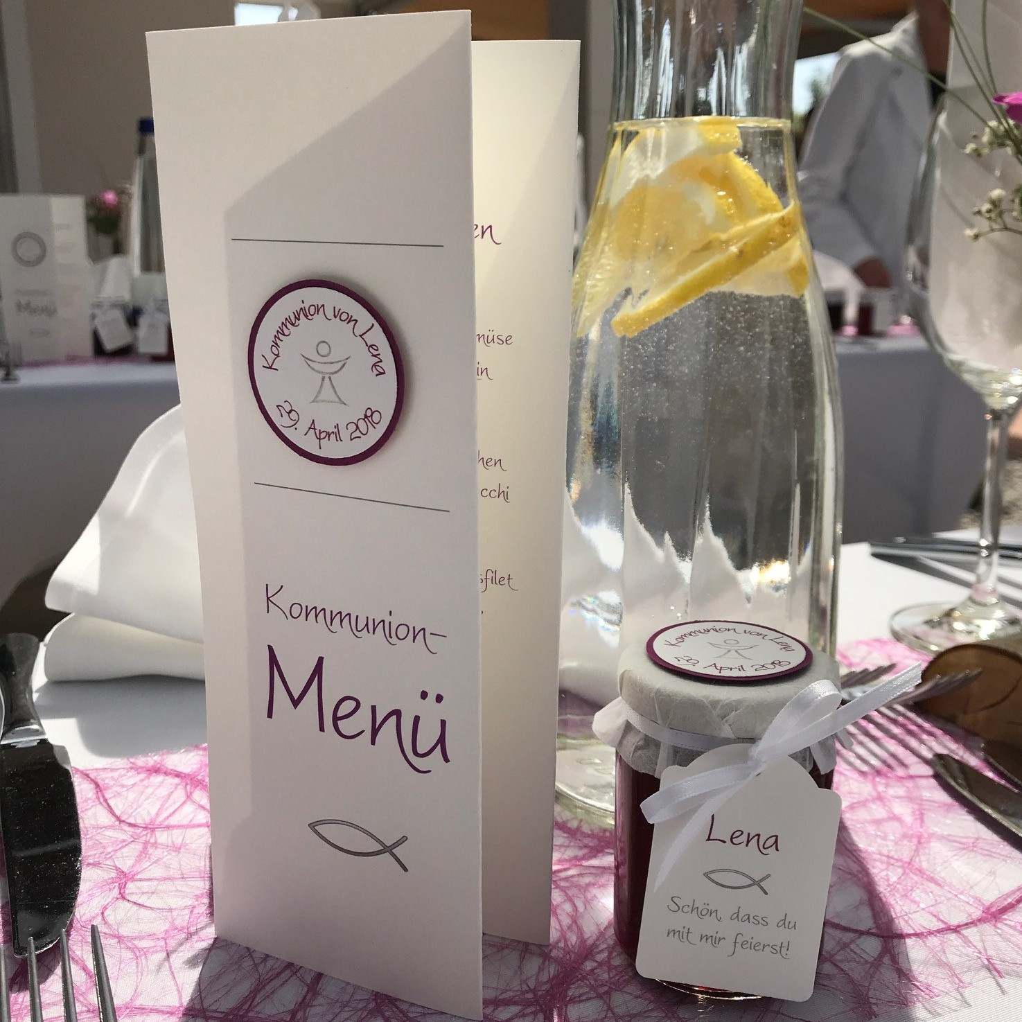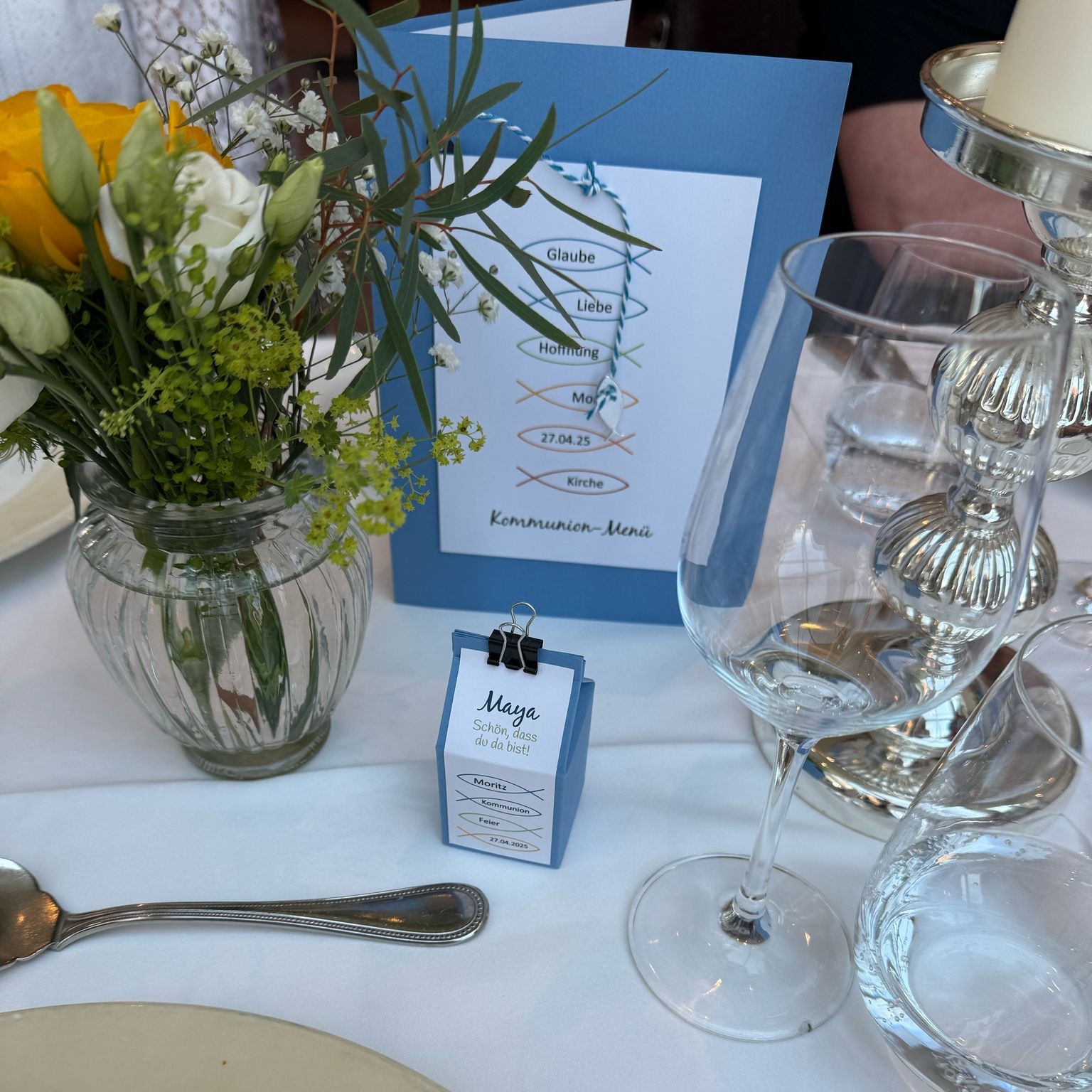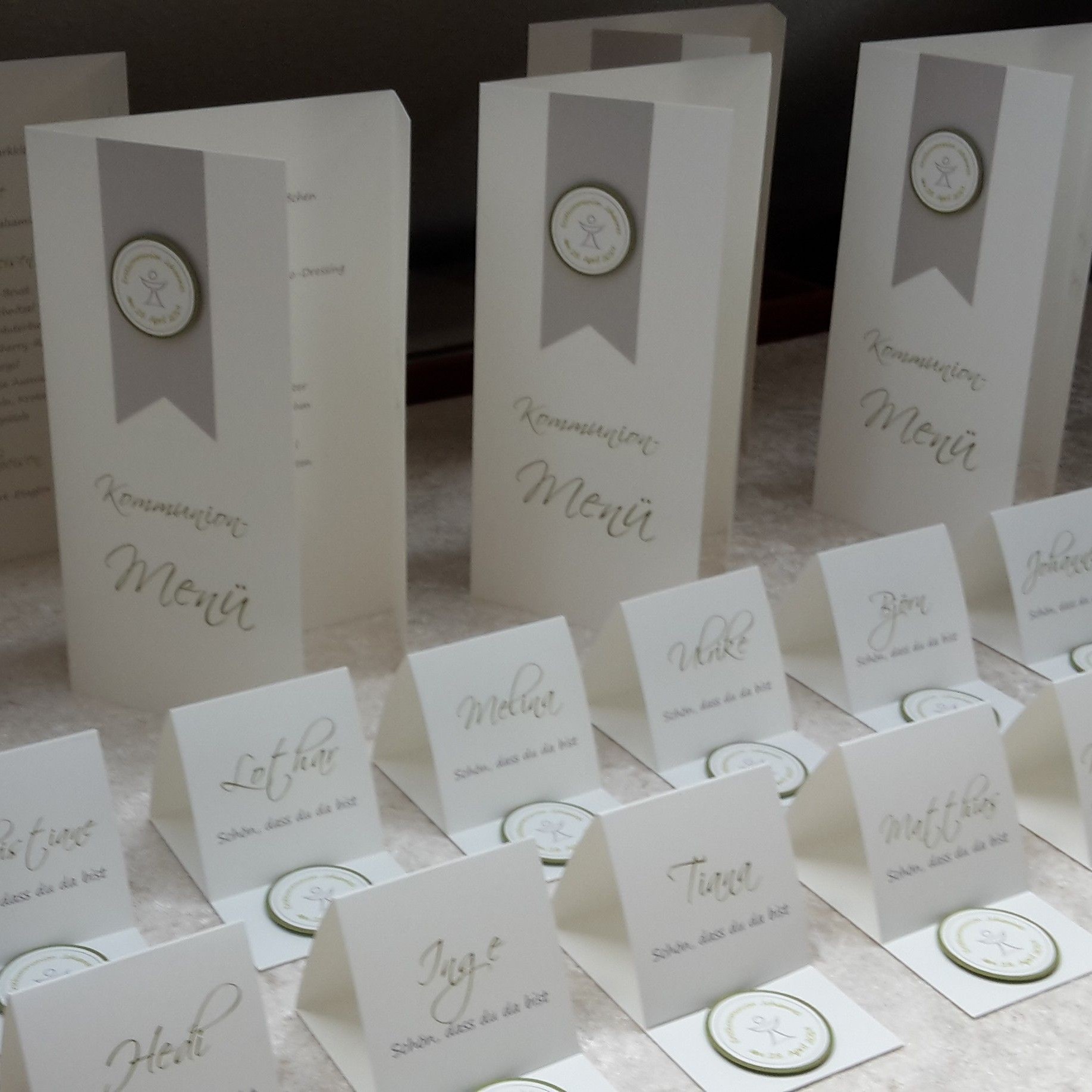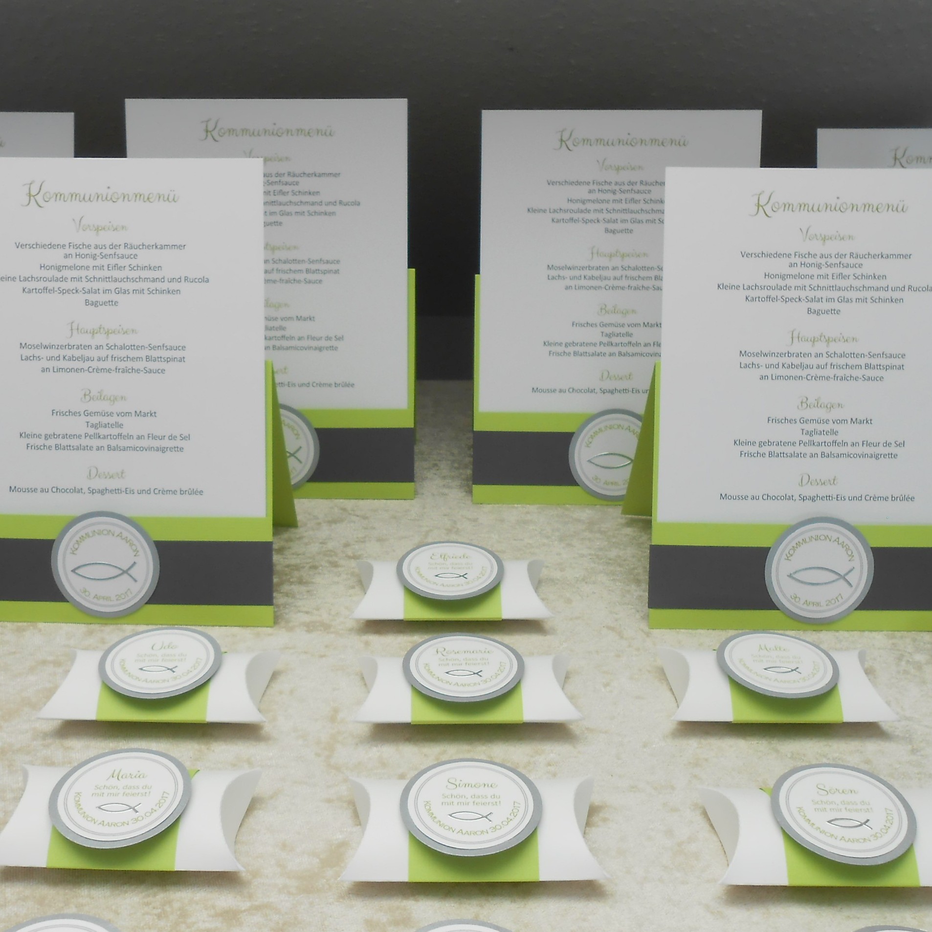 Passend zu jeder Einladungskarte ist eine passende Menükarte, Namenskarte oder ein Gastgeschenk erhältlich.